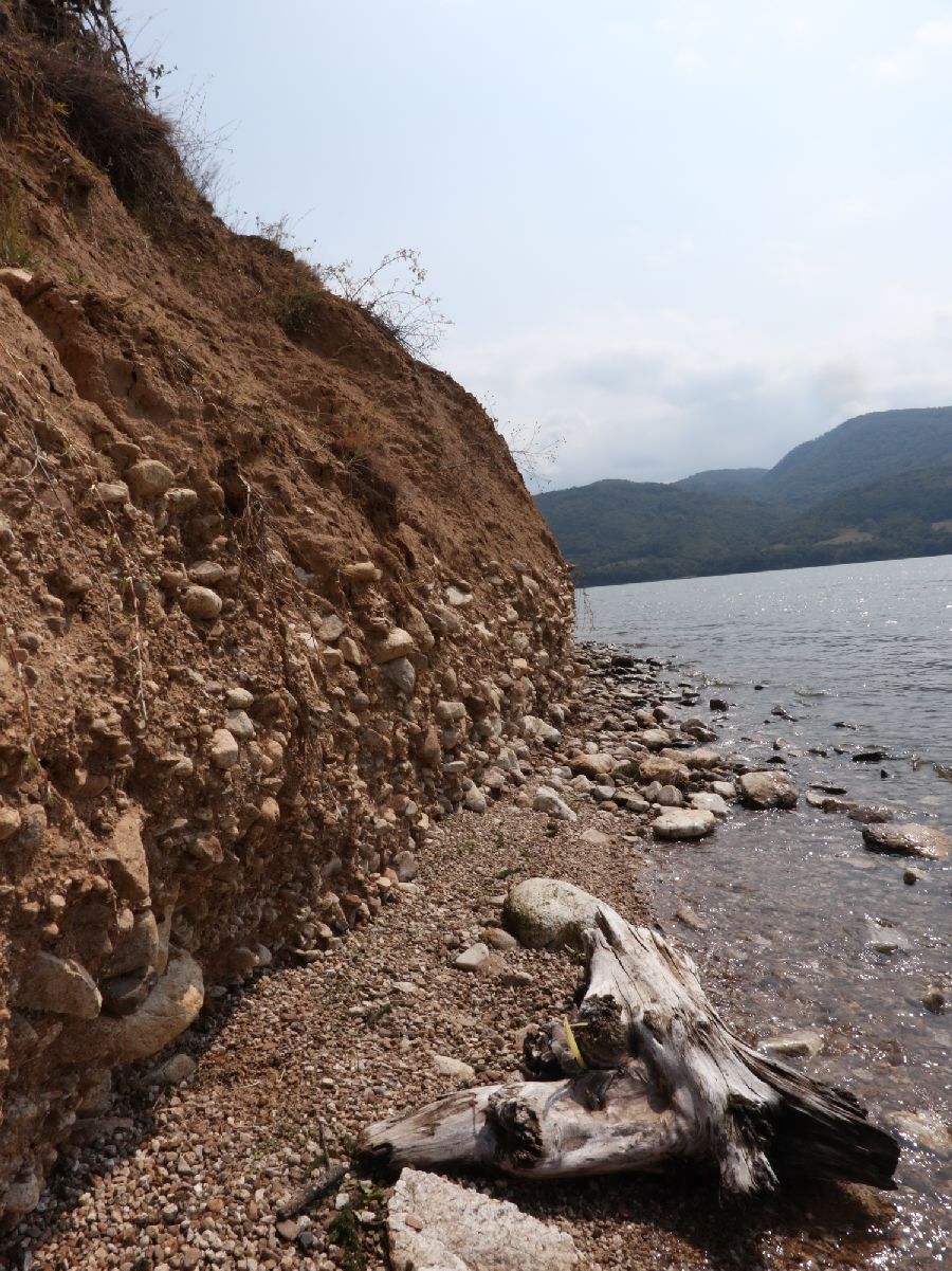 Then the Danube expands again, leading to a wide lake. Pascal remembered the part of the Ammersee. On the Serbian side a small monument of particular significance appears: the Tabula Traiana. It is a Roman memorial plaque which Trajan, the Roman Emperor in 100 AD, had engraved into the stone. Dolphins, an eagle, roses, and an inscription are depicted on it, made for the occasion of the completion of an important Roman road. The Trajan Road was built in preparation for the Dacian wars. The plaque is no longer, however, in its original position. Before the construction of the power plants the marble plaque was carved out and positioned in a higher place. The section of the Trajan Road now lies deep under water.
