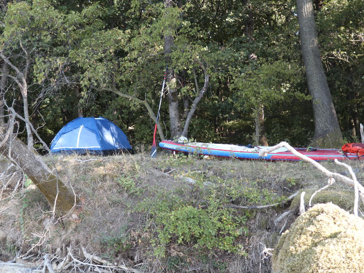 At around 16:00 Pascal had had enough of paddling. Pascal landed on the Romanian side, opposite the little village of Zike, at river kilometre 890. Here he found a peaceful and idyllic little place on the riverbank and erected his tent. The rubbish to the left and right ruined the atmosphere a little. But Pascal isn't going to let himself be brought down and would now like to relax during the evening and enjoy the peace of nature. "Here you can really unwind, for the first time it really feels like a holiday." he said to me on the phone. With sufficient food and five litres of water, he is also properly prepared for the night. As it was a sunny day, there will surely be a beautiful sunset over the Danube. It would be the perfect end to a relaxed day. And so it's time to bid Pascal goodnight on his first evening in the open wilderness.