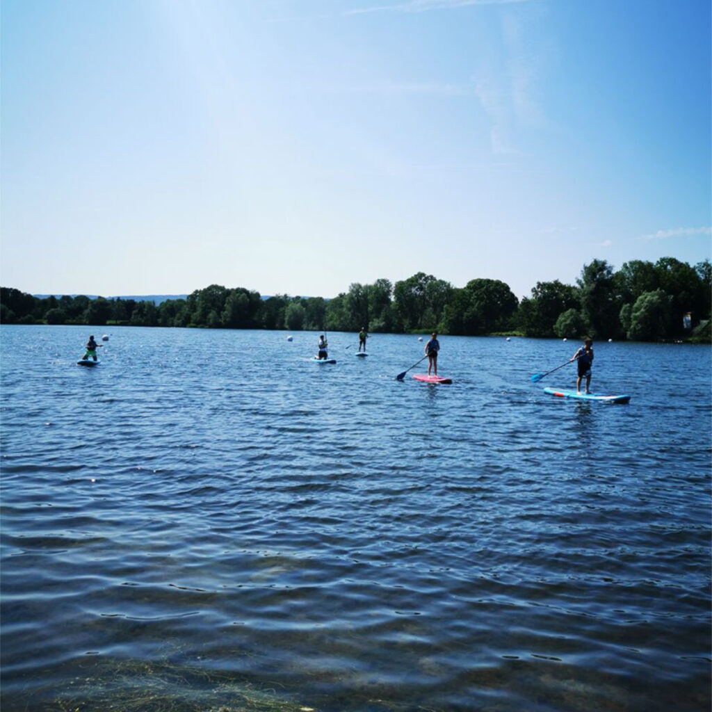 Das SUPen wurde wieder zum Highlight. Das Wasser lag ruhig, Boote zogen weite Kreise und ließen kleine Wellen auf dem See tanzen. Dazwischen: mutige Kinder, balancierend, lachend und wach.