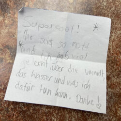 In Stralsund hingegen forderte die Ostsee mit Flut, Böen und kaltem Salzwasser. Und dennoch waren alle Jugendlichen der Diesterweg-Schule mutig genug, mit uns auf die SUPs zu gehen und sich dem Wasser anzuvertrauen. Ein Mädchen kam strahlend aus den Wellen: „Ich wünsche mir jetzt ein eigenes SUP!“ Erfrischung war hier mehr als ein körperliches Gefühl – es war ein Aufbruch und ein inneres Aufleuchten.