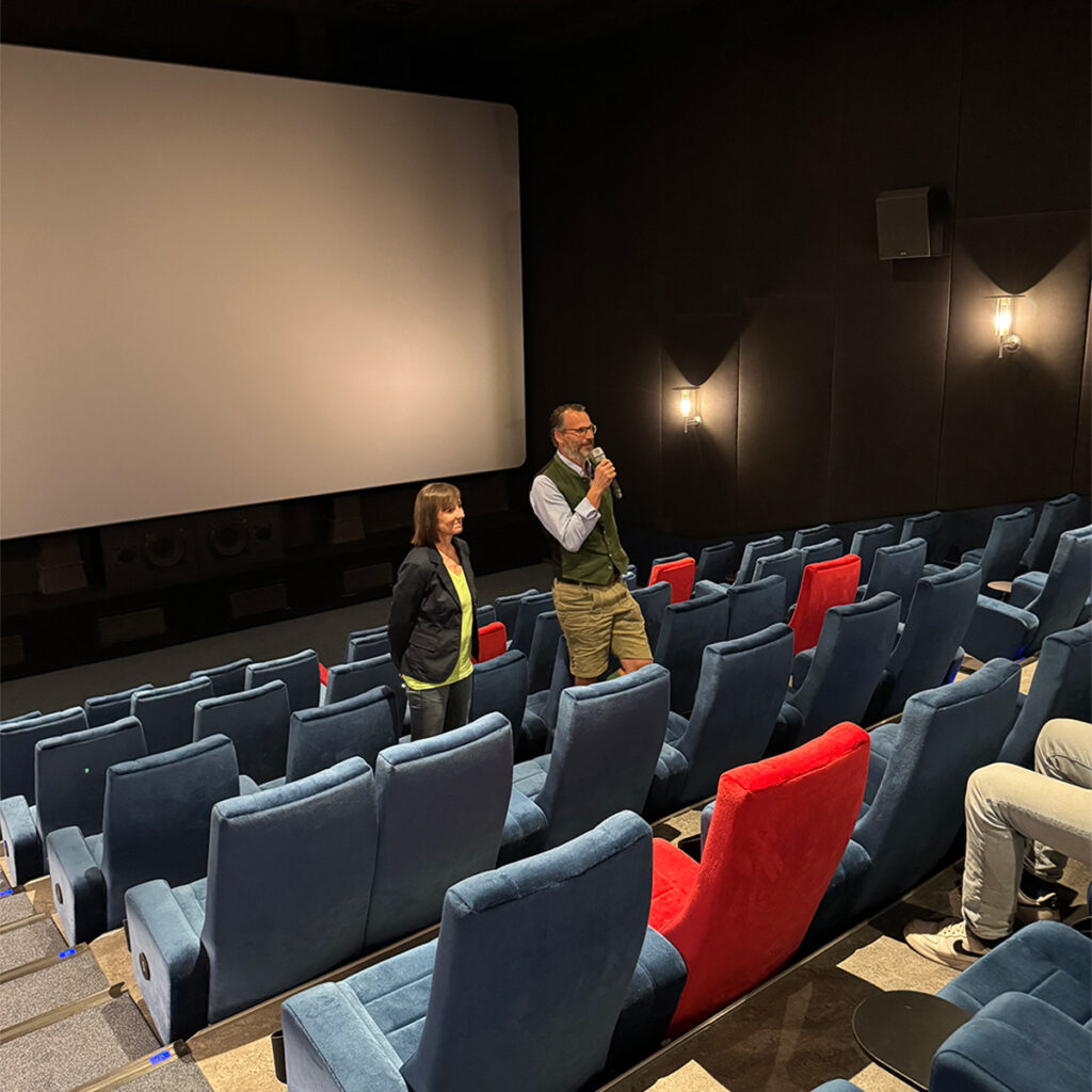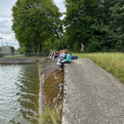 Früh am Morgen versammelten sich die Schüler:innen des Johann-Michael-Sailer-Gymnasiums im Filmcenter, um Pascal auf seiner Reise bis ins Schwarze Meer zu erleben. Danach ging es hinaus an die Donau, zum Wasserkraftwerk bei Flusskilometer 2538,95. Die Achtsamkeitsstation ließ die Jugendlichen spüren, dass hier mit der Donau etwas nicht in Ordnung ist. Schnurgerade und träge treibt sie die Turbinen des Wehrs an. Eigentlich kann man hier nicht von einem Fluss sprechen, die Donau ist hier lediglich Mittel zum Zweck.