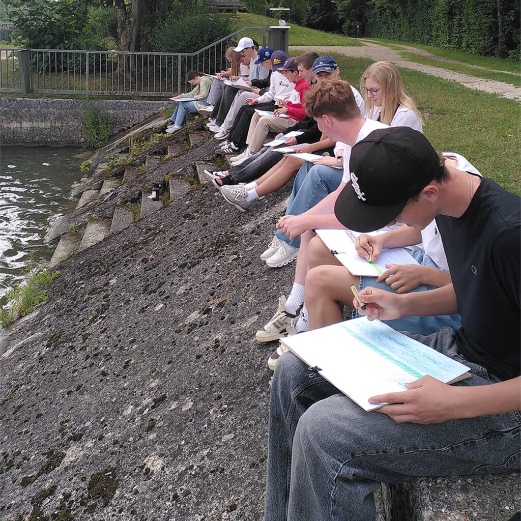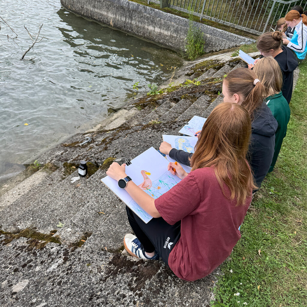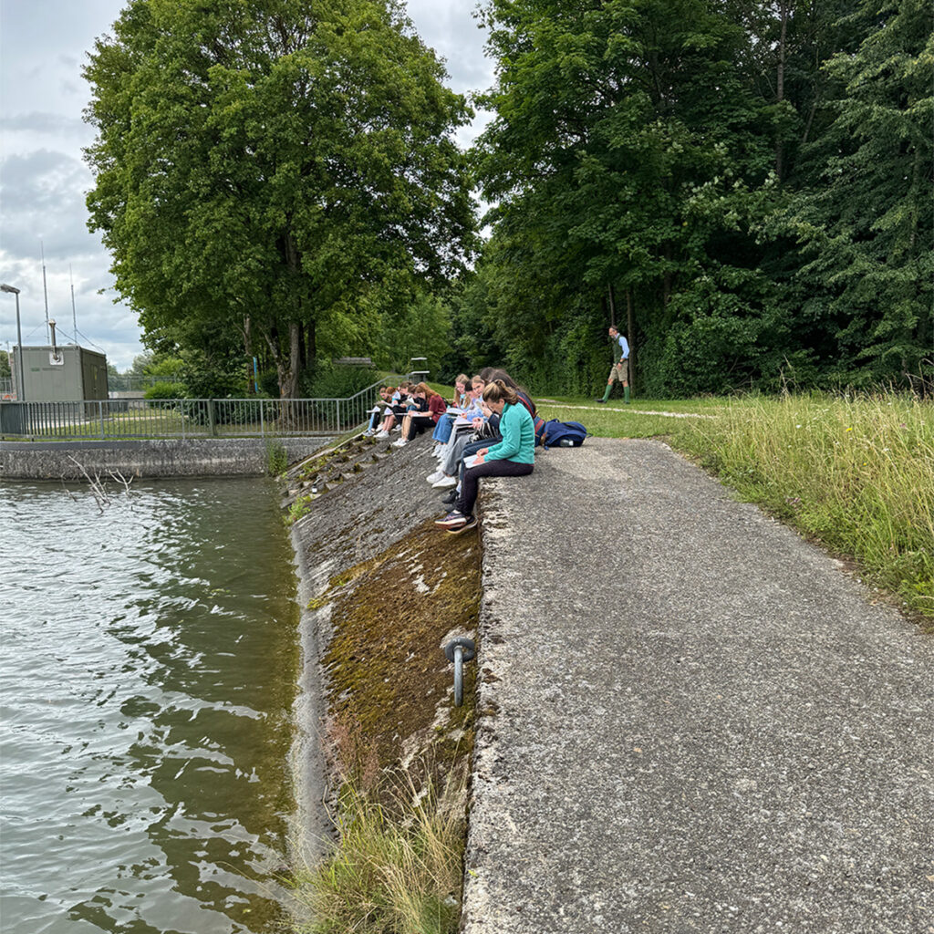 Am Ufer malten die Schüler:innen Wasserbilder und entnahmen Mikroplastik-Proben – all das zeigte: Der Fluss ist präsent, aber kaum im Lebensalltag der Dillinger verankert.