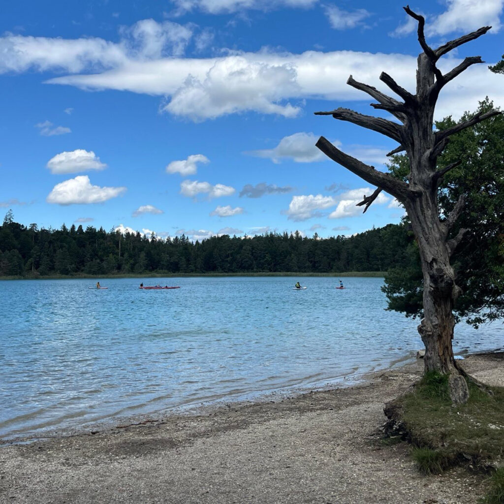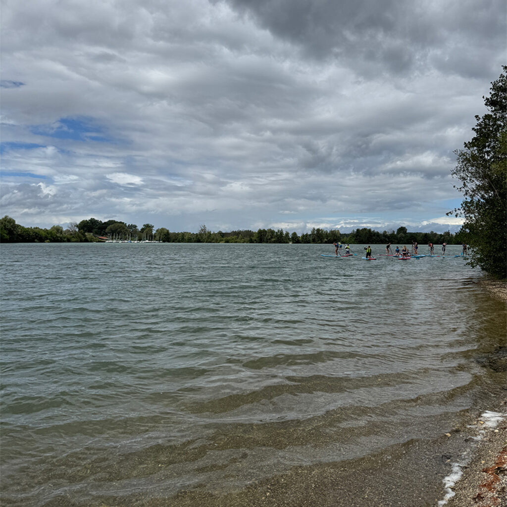 Nach den Stationen paddelten die Schüler:innen der Heinrich-Campendonk-Realschule Penzberg mit uns auf den See hinaus und ließen sich treiben. Ein schöner Teamgeist entstand, achtsam und leicht.