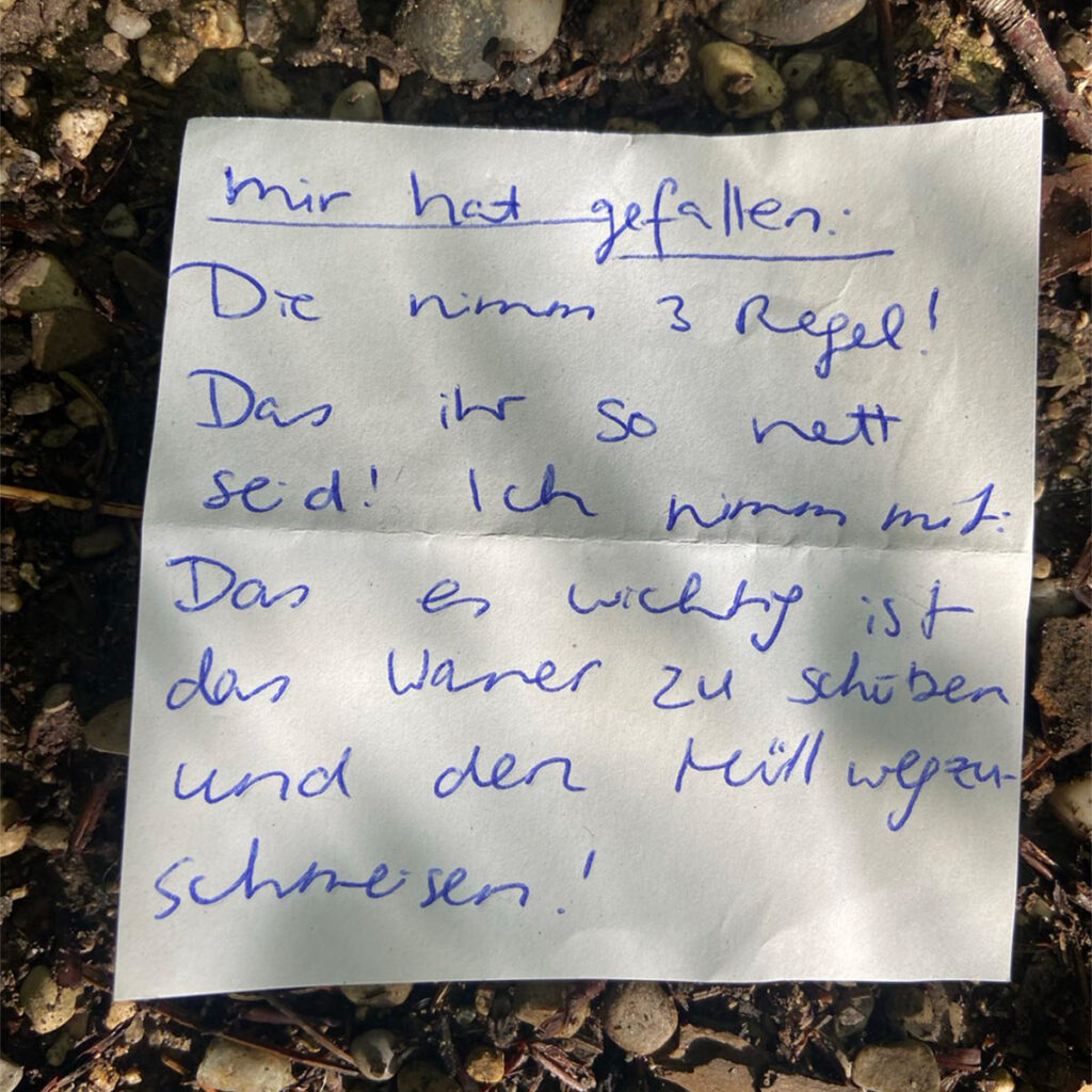 MAHALO an die Loni und Josef Grünbeck-Stiftung, an Helmut Röger von der WTO – Wassertechnik Ostbayern für die Unterstützung bei den Wassertagen in Dillingen und Regensburg, an die Sparkasse Schwaben-Bodensee, an BNP Paribas Real Estate München, an Michael Kreuzer, Hermann Schneider, die Lehrkräfte und alle Jugendlichen – und an die Donau, die Weisinger Seen, den Mindelsee und den Fohnsee. Danke, dass ihr uns gezeigt habt, wie viel wir gewinnen können, wenn wir euch eure Ufer zurückgeben.